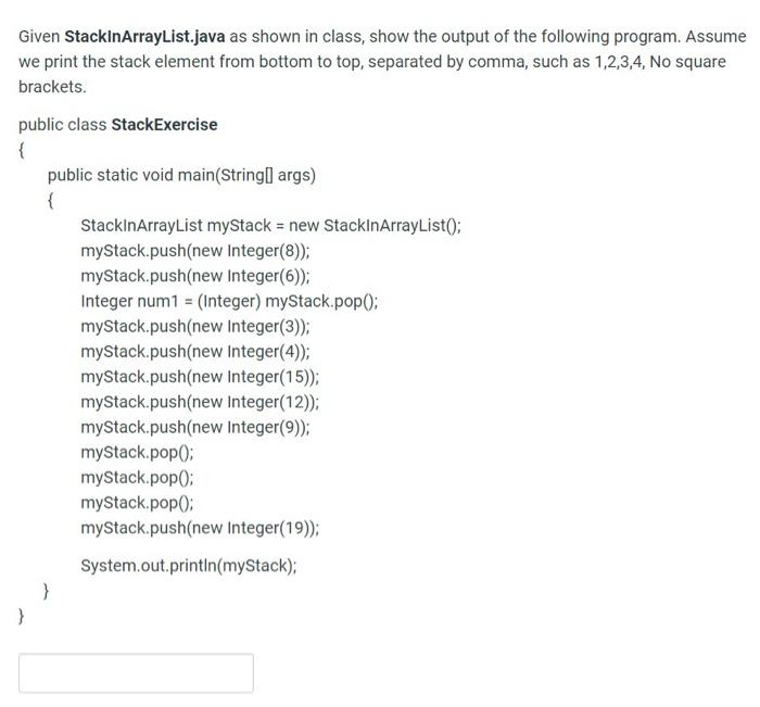 Solved Given StackinArrayList.java as shown in class, show | Chegg.com