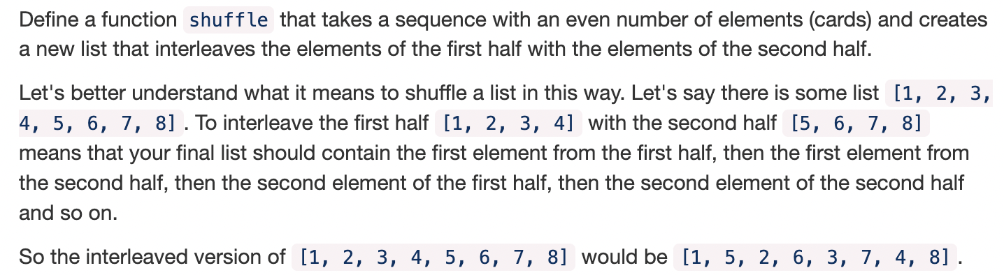 Solved Define a function shuffle that takes a sequence with | Chegg.com