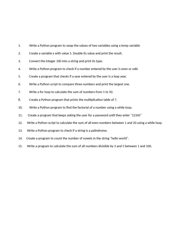 Python Practical Assignment.pdf - 1. Write a program to swap two ...