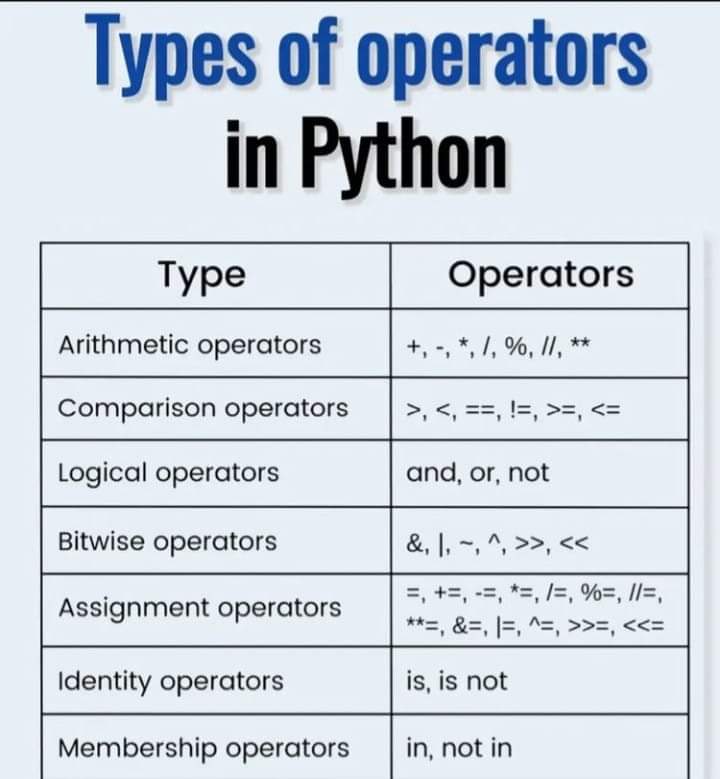 PINAKI on Twitter: "Types of operators in Python #coding #programming # ...