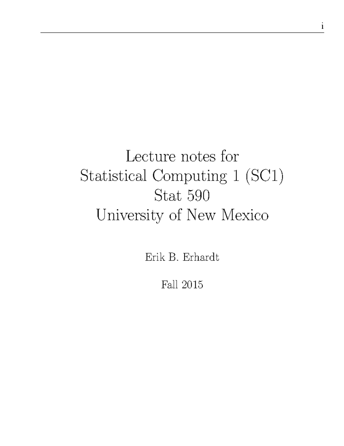 SC1 01 La Te X R - kldannqjlekadnlkc - i Lecture notes for Statistical ...