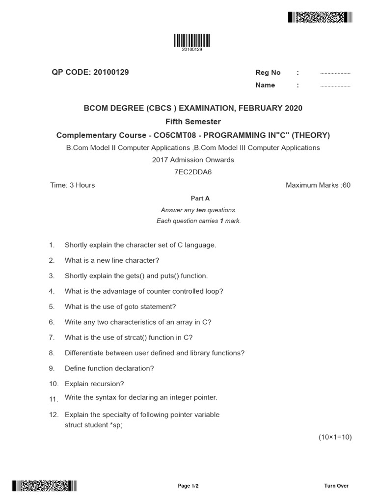 B.Com Programming in C Exam 2020 | PDF | Computer Program | Programming