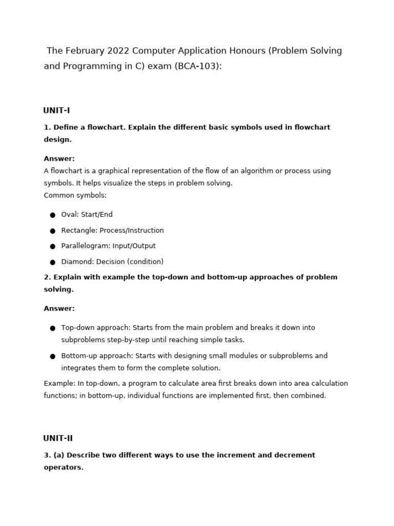 BCA I Sem Programming in C Exam Notes (BCACACS 102) - Studocu