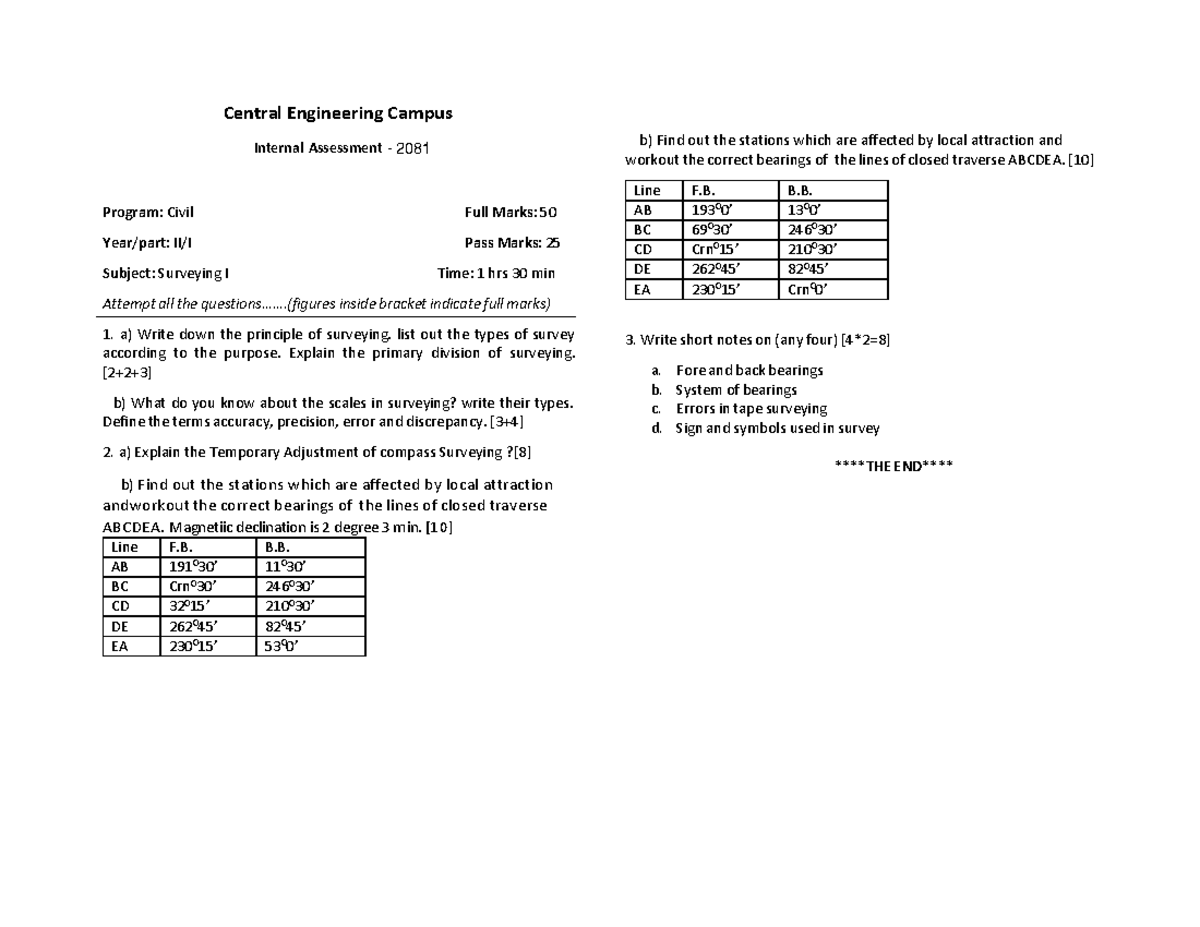 Surveying I Internal Assessment 2081: Closed Traverse & Bearings ...
