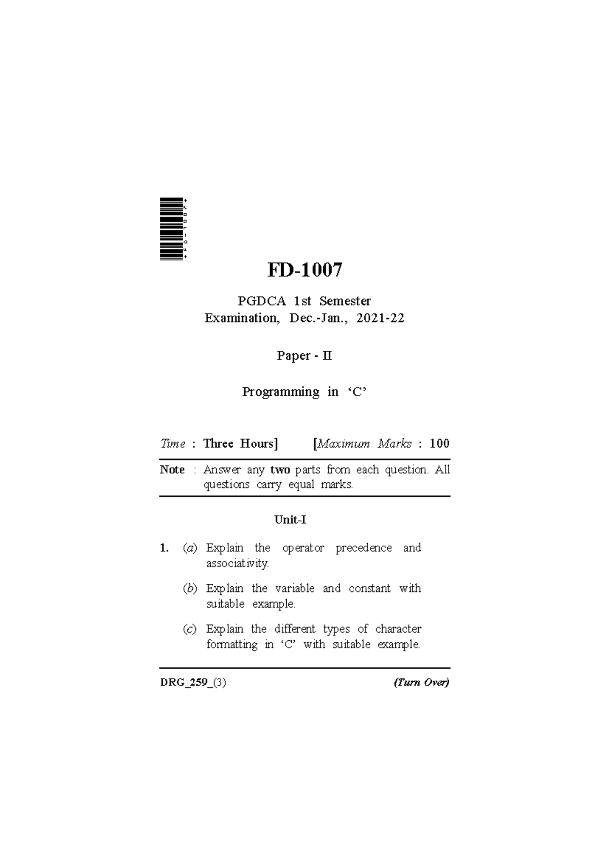 FD-1007 PGDCA 1st Sem Programming in C Exam Notes 2021 - Studocu