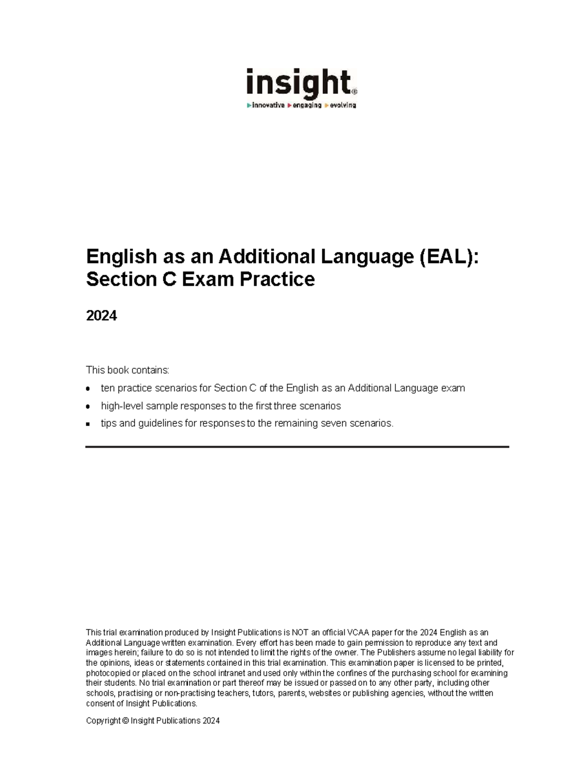 2024 Year 12 EAL Section C Exam Practice Scenarios and Analysis - Studocu