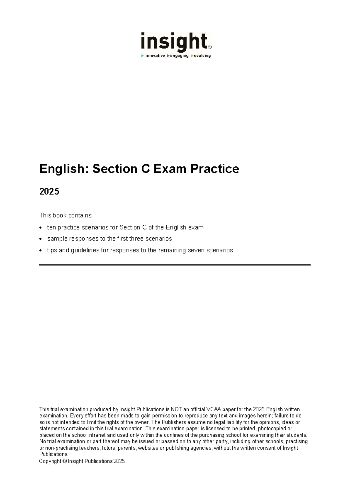 VCE English: Section C Exam Practice Scenarios & Analysis 2025 - Studocu
