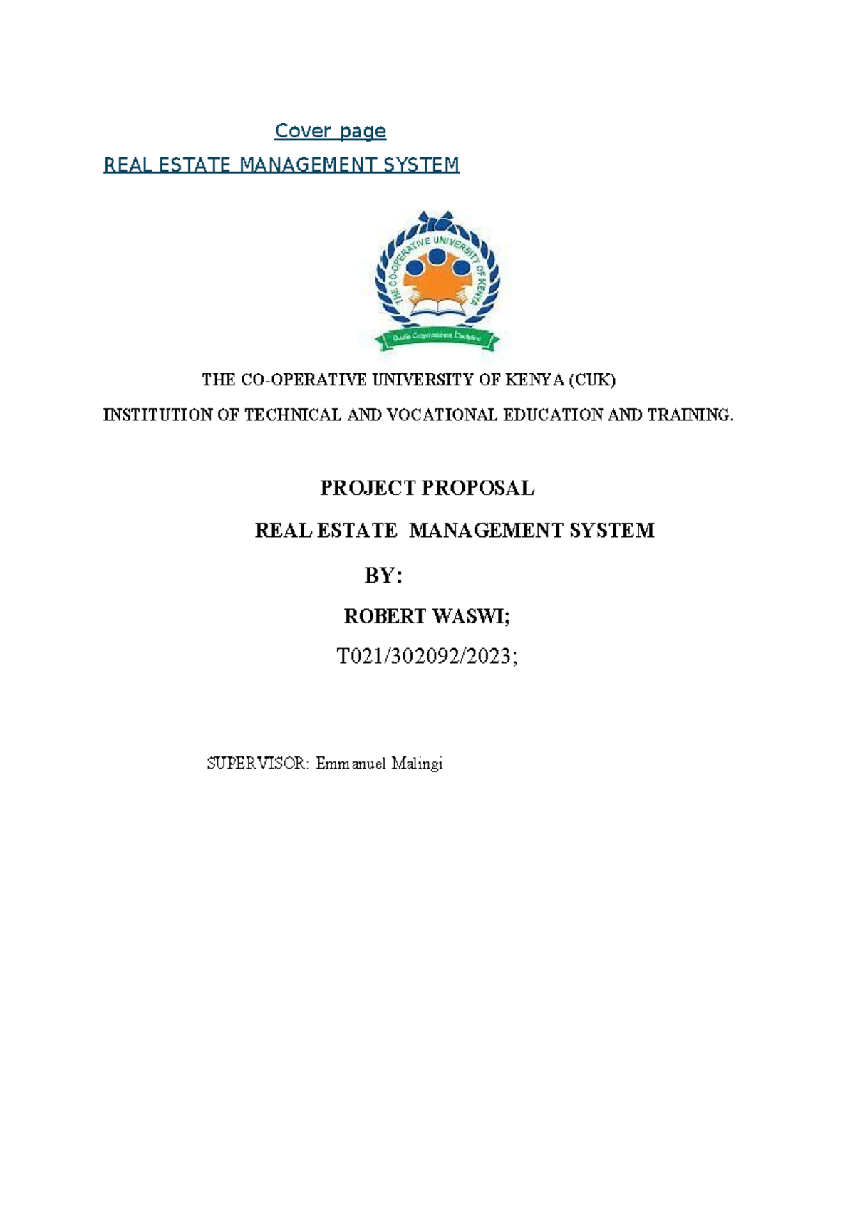 Robert Waswi - This is a project proposal - Cover page REAL ESTATE ...