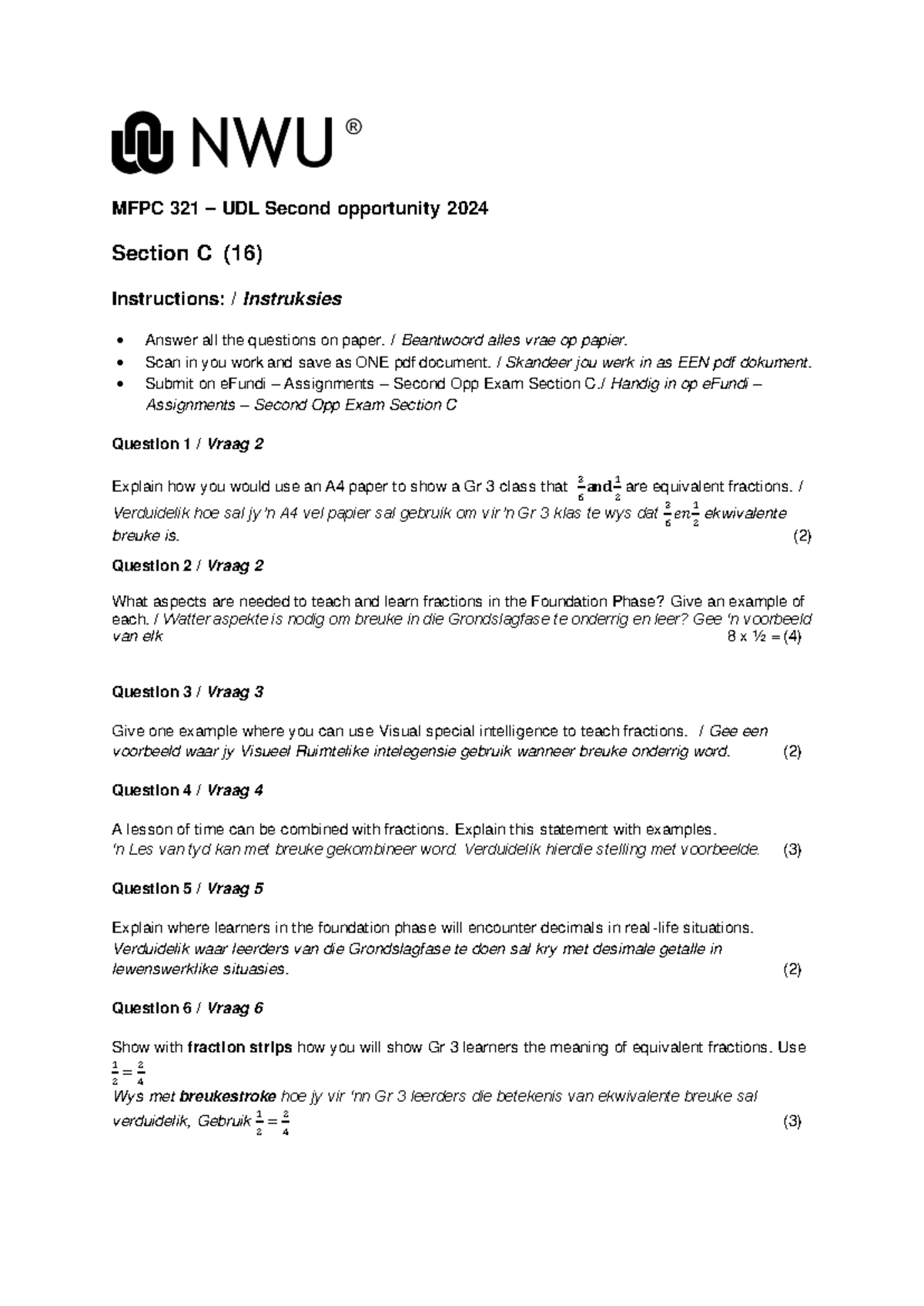 MFPC 321 Second Opportunity UDL 2024 Section C Exam Guide - Studocu
