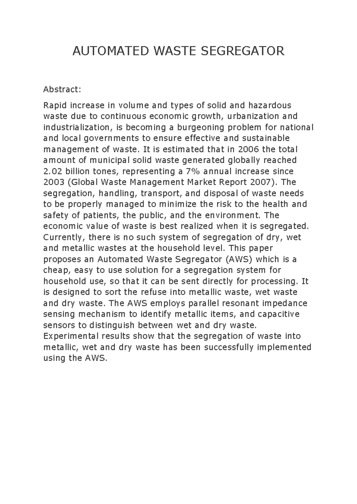 MEC150 - Project Proposal Notes for Automated Waste Segregator - Studocu