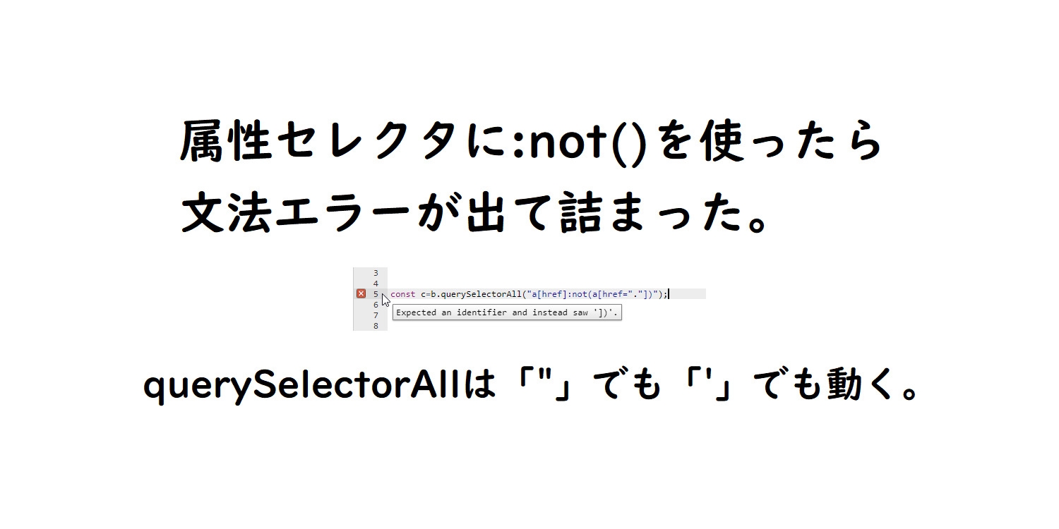 属性セレクタとnotを使ったら文法エラーが出て詰まった話。[querySelectorAll]