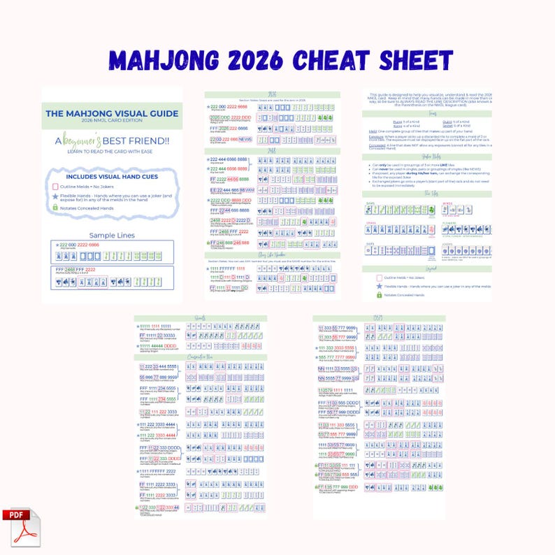 2026 Mahjong Cheat Sheet Printable, American Card Hands Visual Guide ...