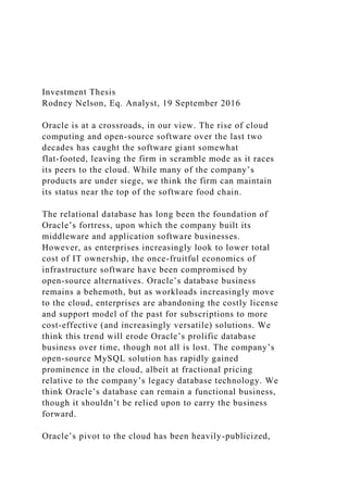 Investment Thesis Rodney Nelson, Eq. Analyst, 19 September 2.docx
