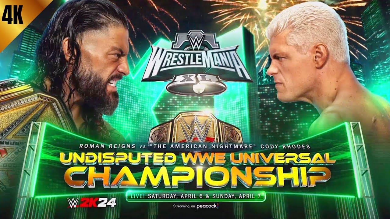 WrestleMania 40 ROMAN REIGNS Vs CODY RHODES Match For The Undisputed ...