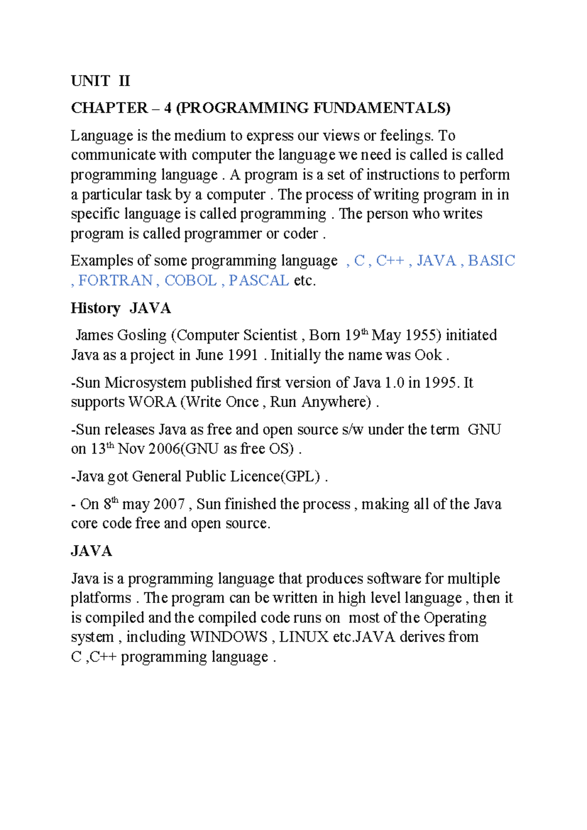 Comprehensive Notes on Unit-3: Fundamentals of Java Programming - Studocu