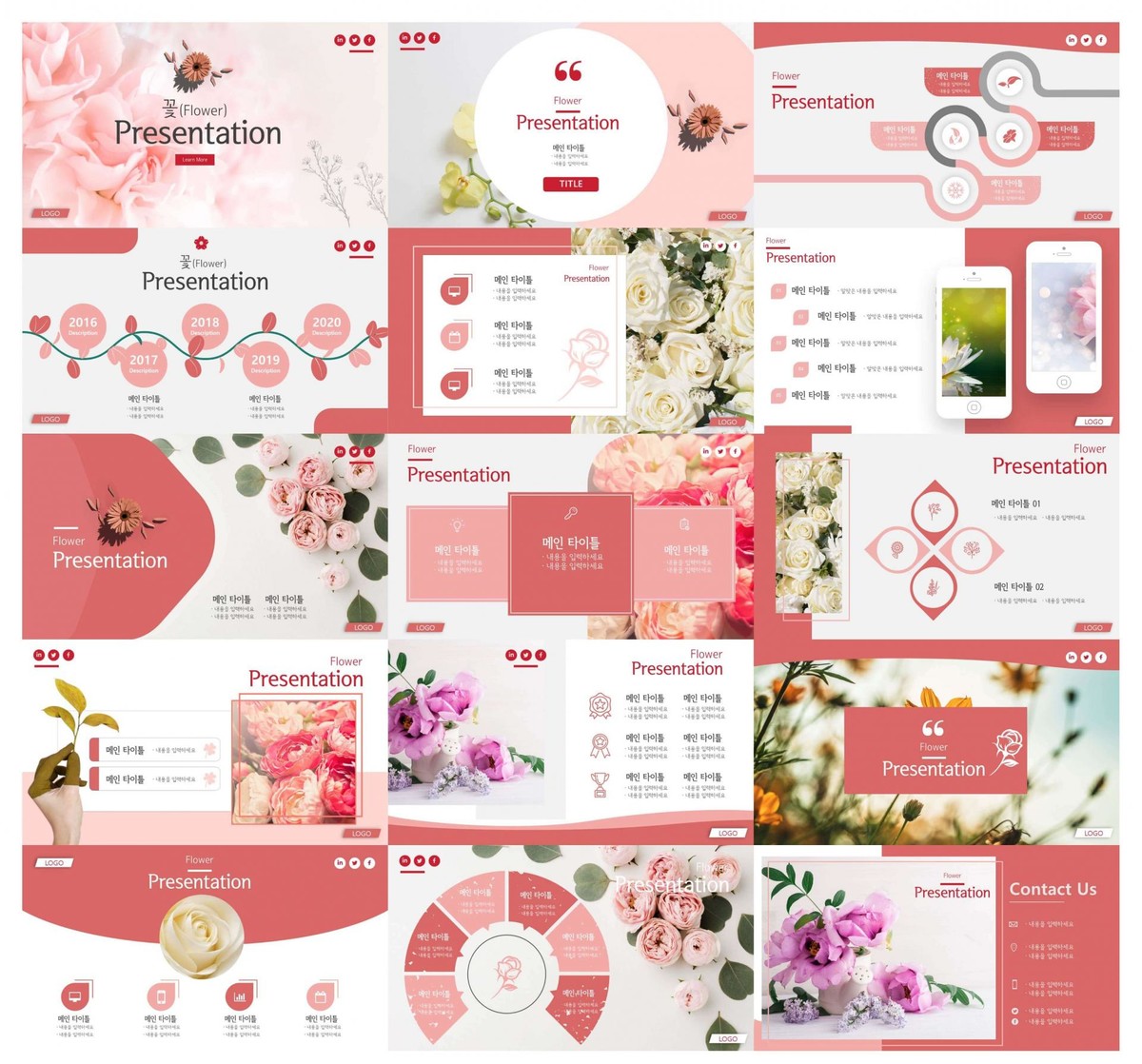 예쁜 꽃 PPT 템플릿 : 핑크 색 조합 배경 다운로드 : PPT 템플릿 스토어 - 디자인킵