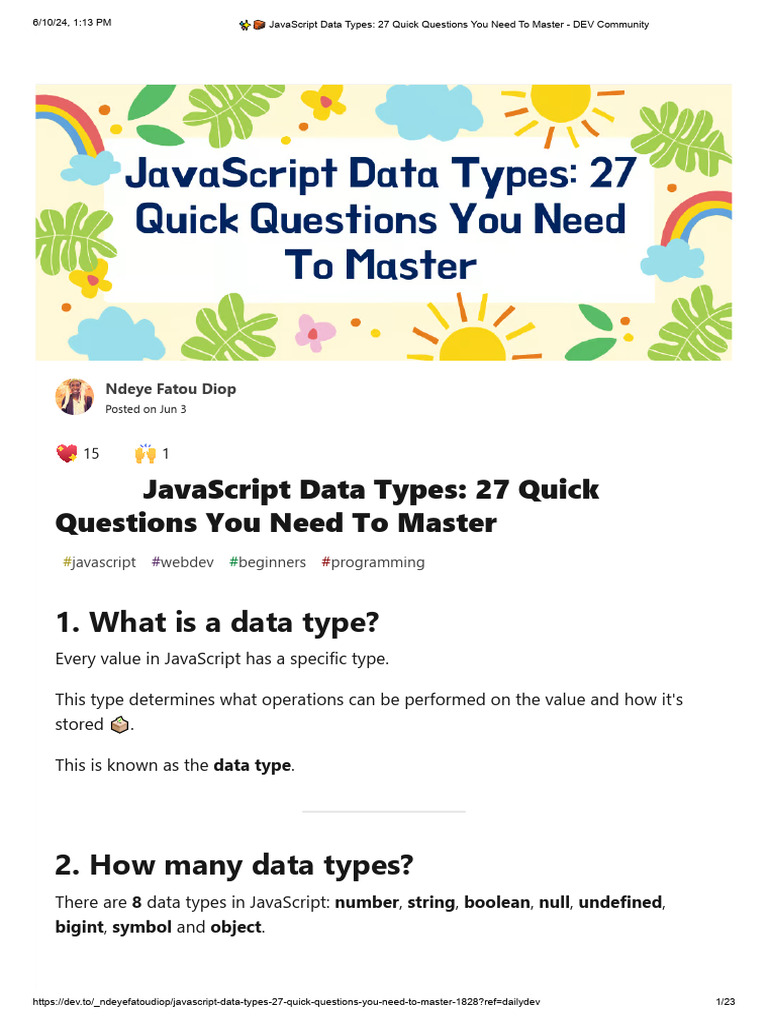 📌 Javascript data types! 🧵 A thread: 👇 - Thread from Sumit | Javascript ...