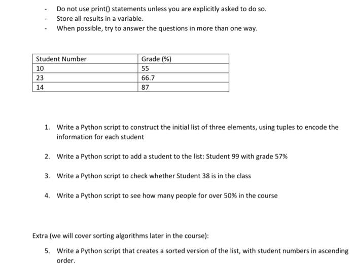 Solved 1.Write a Python script to construct the initial list | Chegg.com