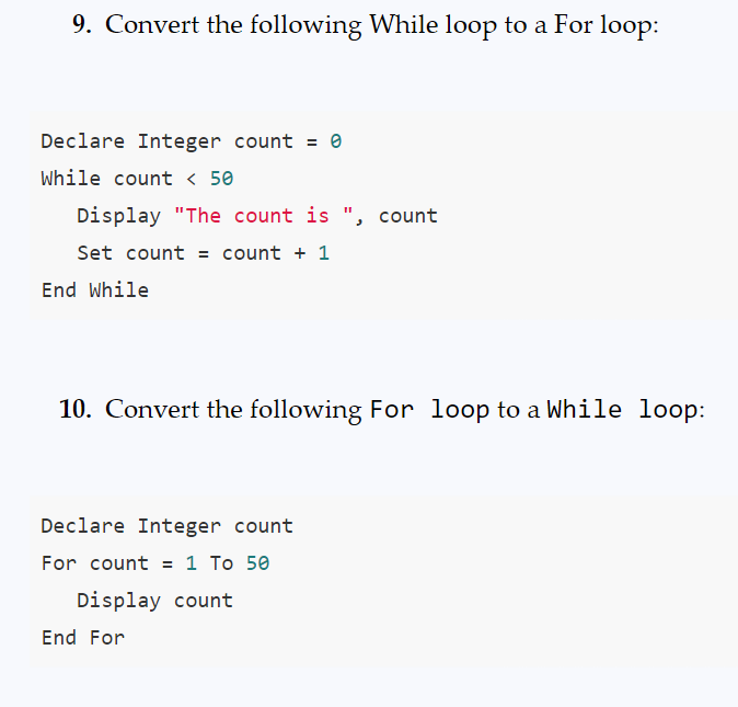 Solved 9. Convert the following While loop to a For loop: | Chegg.com