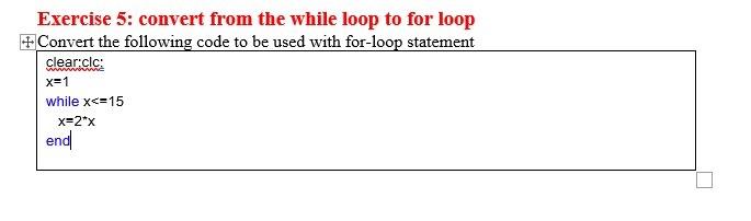 Solved Exercise 5: convert from the while loop to for loop + | Chegg.com