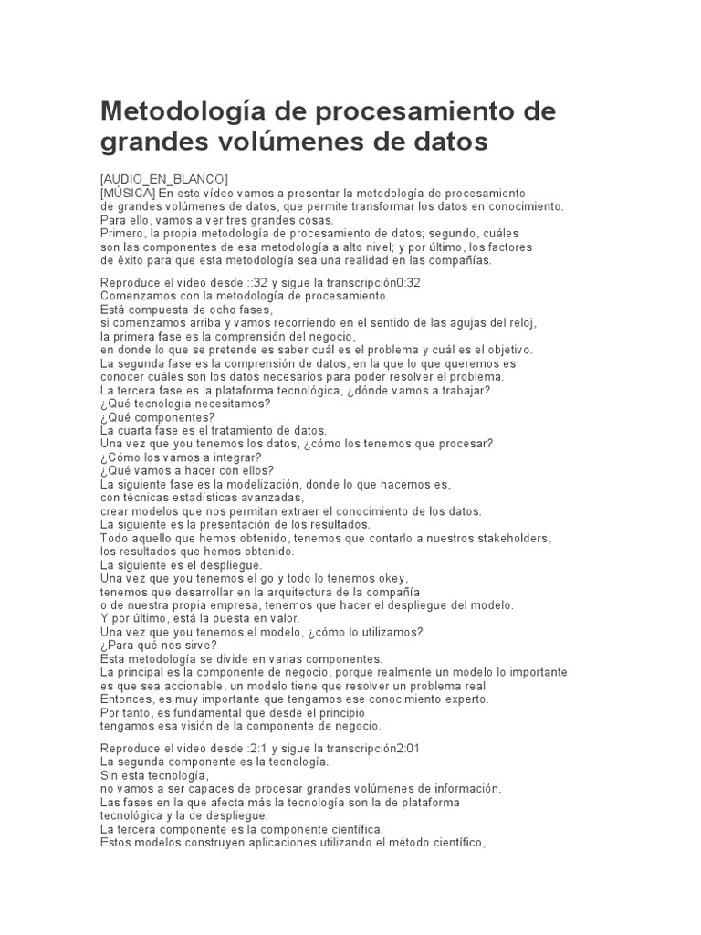 Metodología de Procesamiento de Grandes Volúmenes de Datos | PDF ...