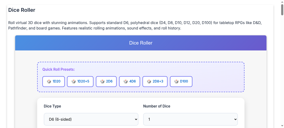 Easy D&D Dice Roller - Simple Online Dice for TTRPGs