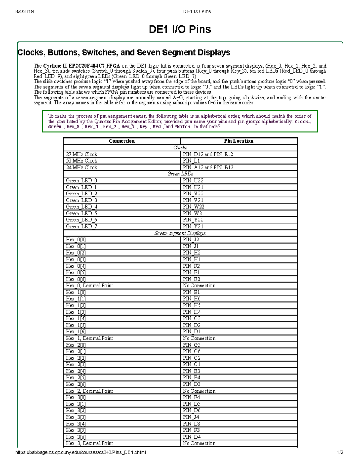 DE1 I/O Pins: Clocks, Buttons, Switches & Displays Overview - Studocu