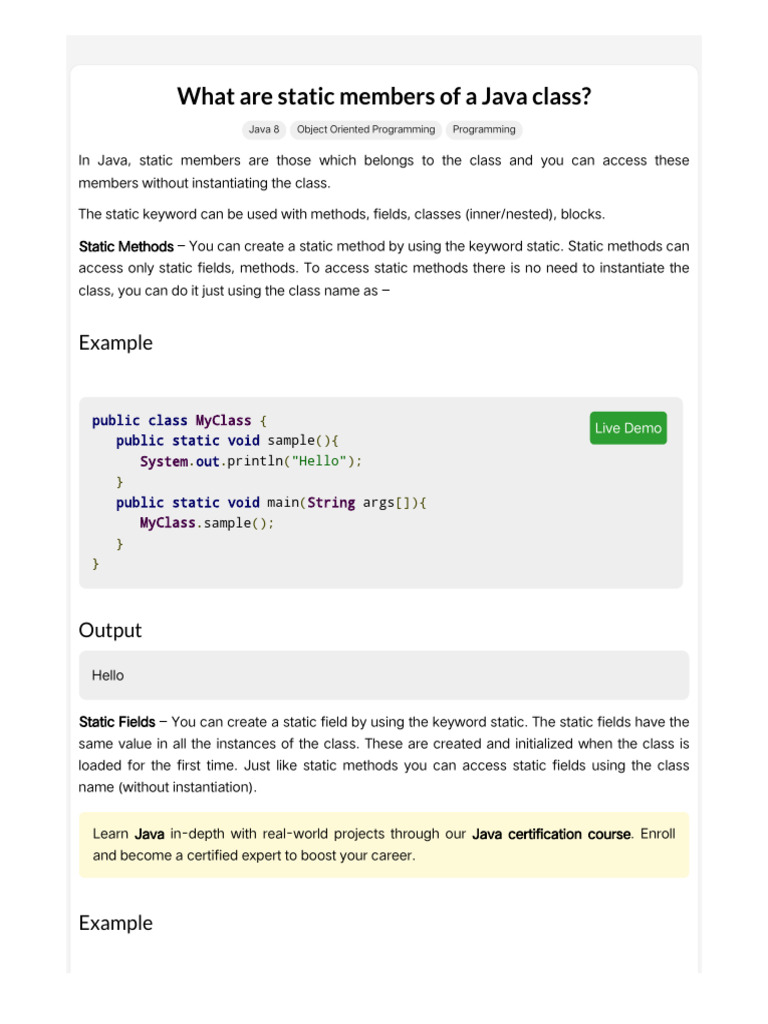 Understanding Static Members in Java: Fields, Methods, and | Course Hero