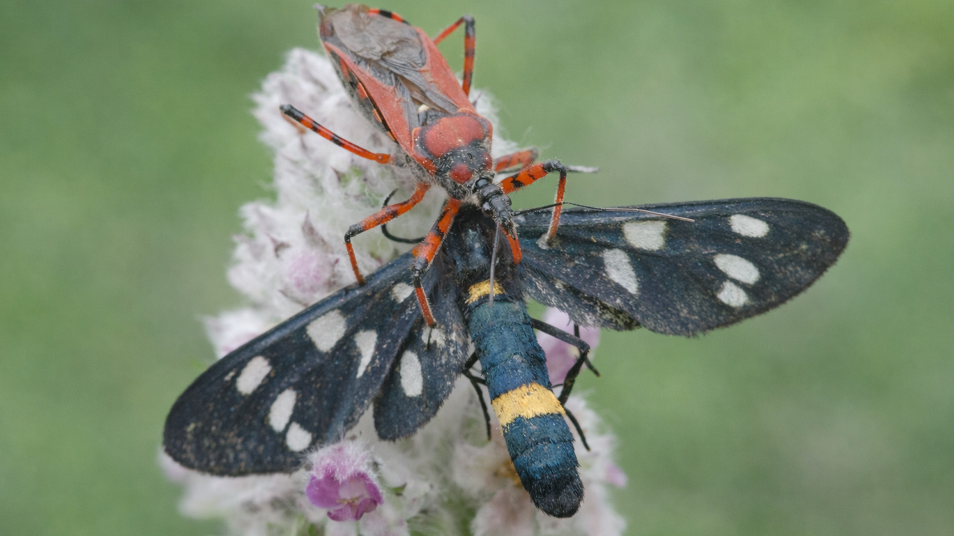 Based on this image's title: “This hidden camera caught a small insect hunt in action”