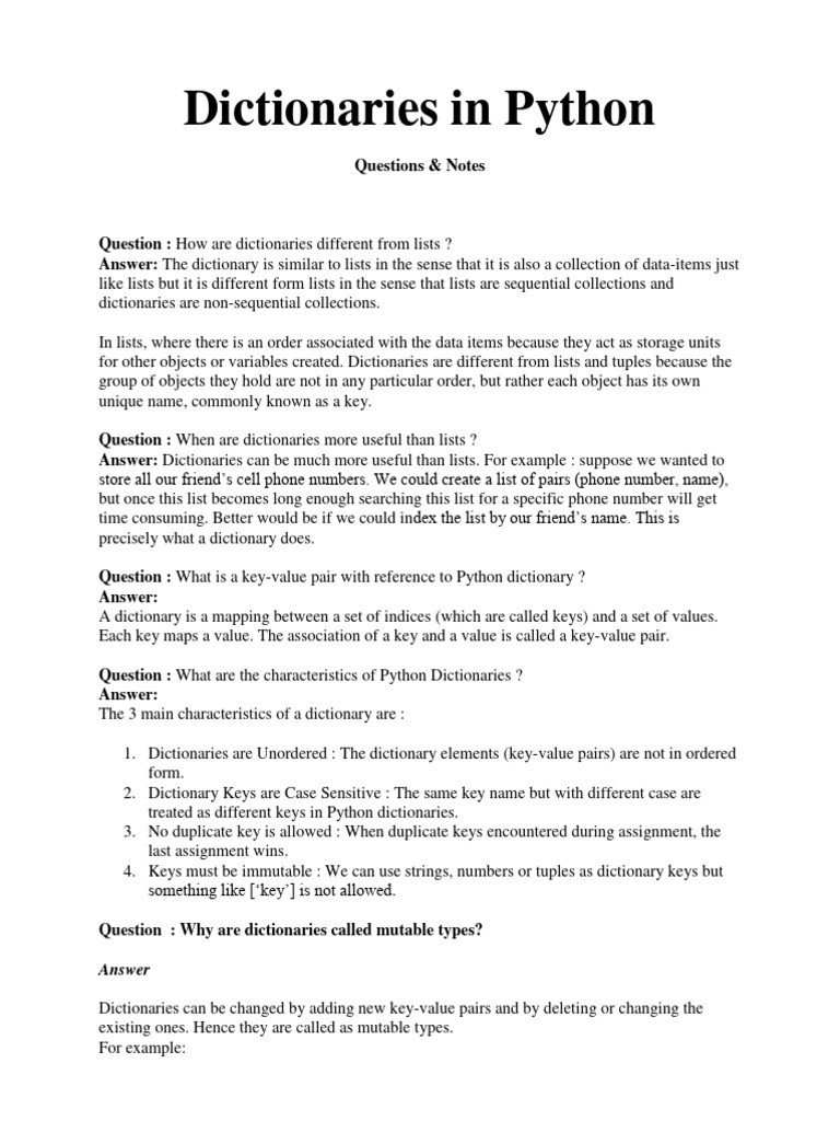 Chapter - 9 Python Dictionaries | PDF | Computer Science | Software ...