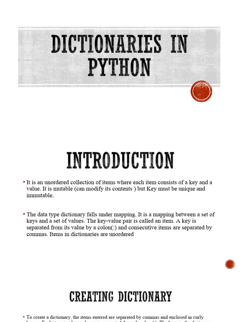 Introduction To Dictionaries in Python | PDF | Computer Engineering ...