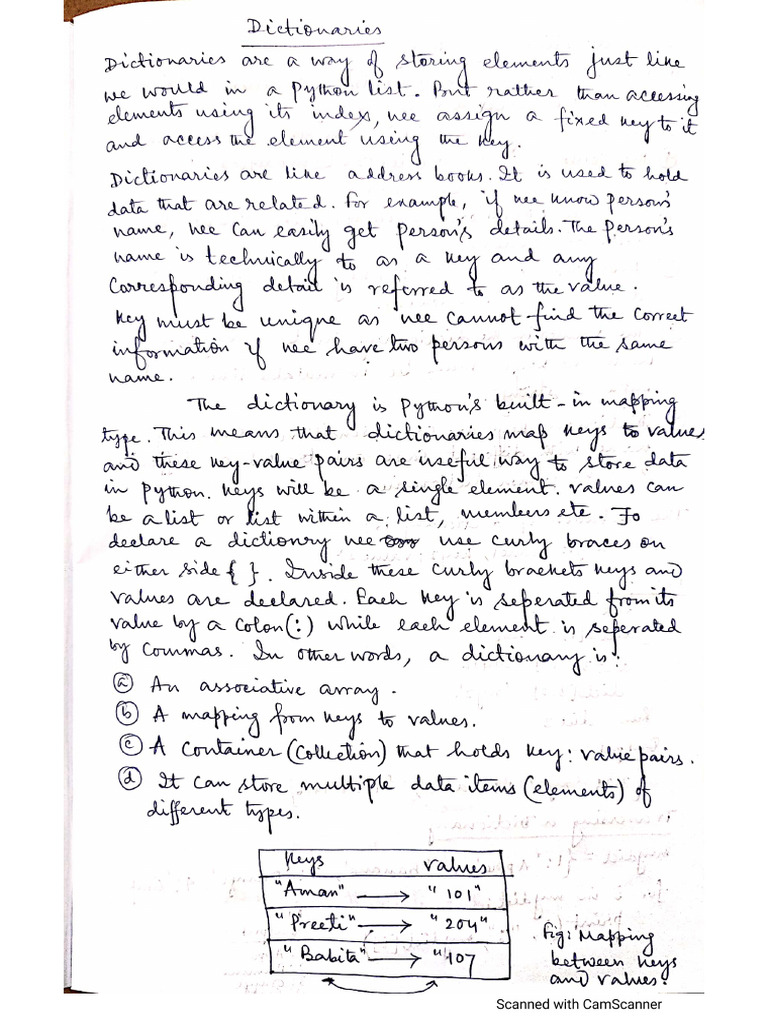 Dictionaries in Python programming for btech students | PDF
