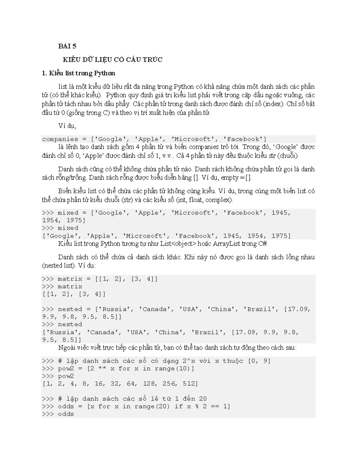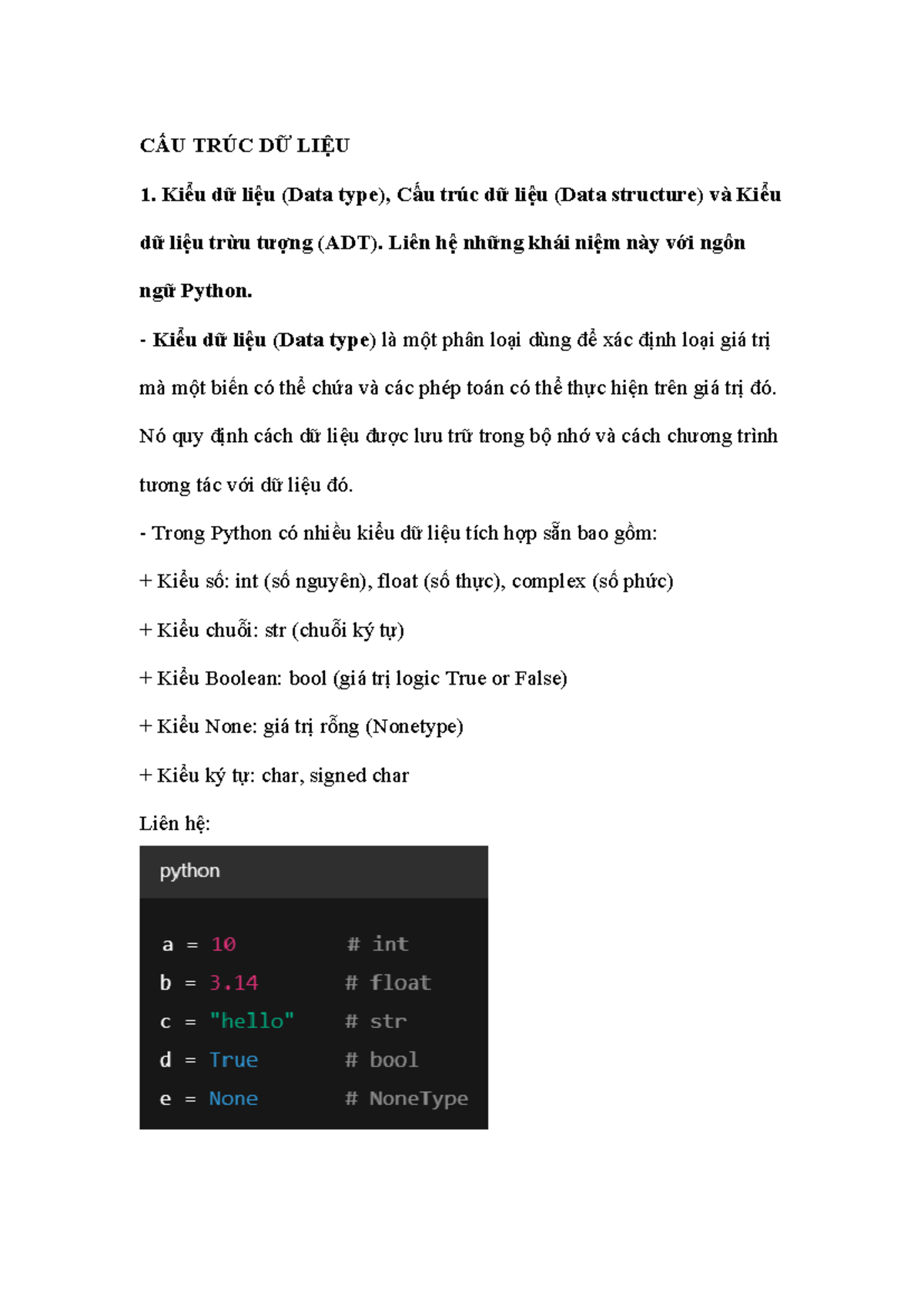 CTDL1 - Kiểu Dữ Liệu và Cấu Trúc Dữ Liệu trong Python - Studocu