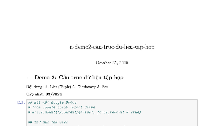 Demo 2: Cấu trúc Dữ Liệu Tập Hợp - Python Basics - Studocu