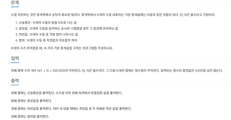 백준 2108 - 통계학(파이썬)