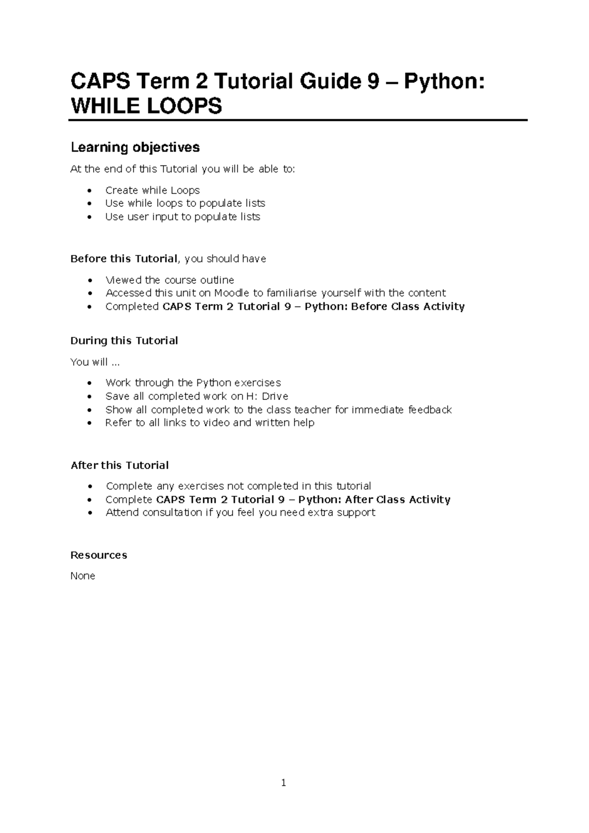 CAPS Term 2 Tutorial 9 Python While Loops Learning Guide - CAPS Term 2 ...