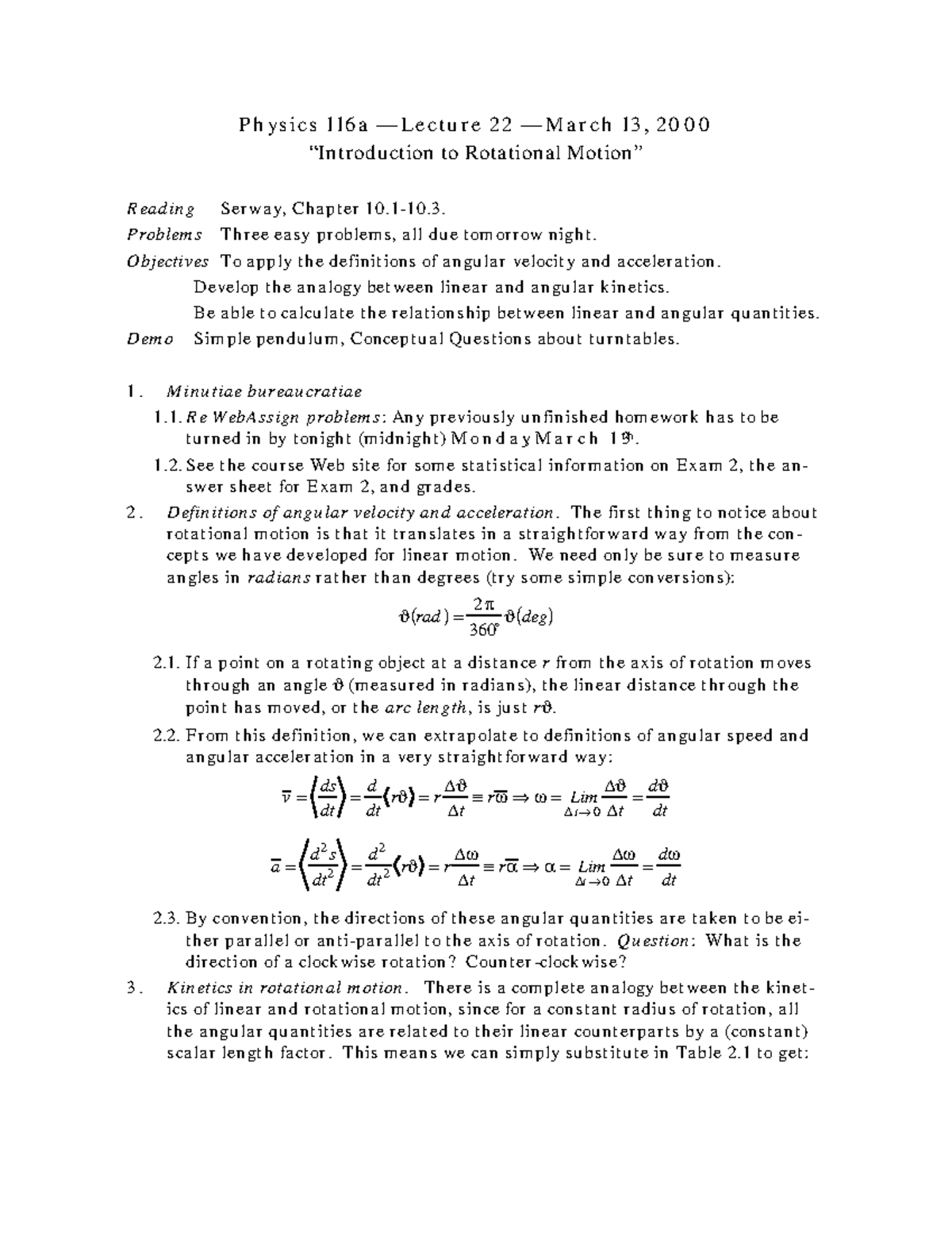 Phys 116a Lecture 22 - Ph ys ics 116 a — Le ctu re 2 2 — March 13 , 2 0 ...