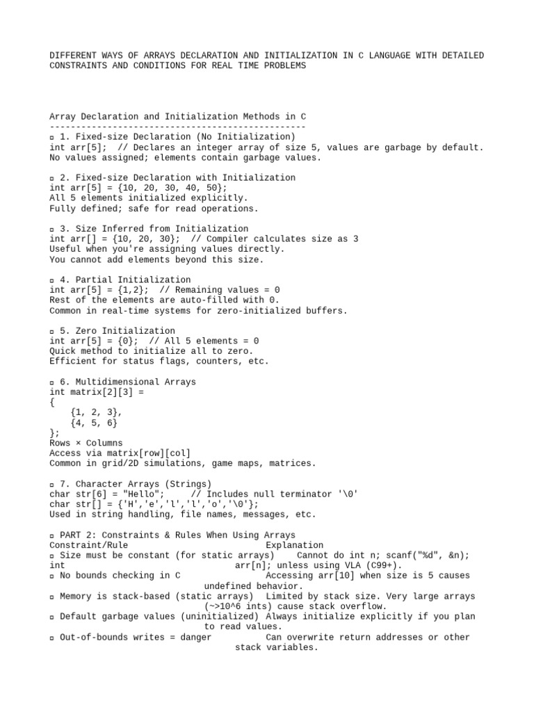 Array Declaration and Initialization Methods in C | PDF | Matrix ...