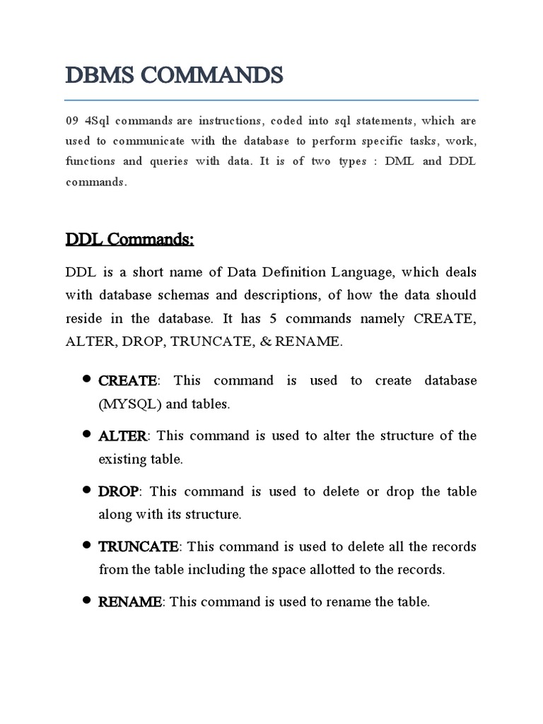 Dbms Basic Commands at Lynn Tyer blog