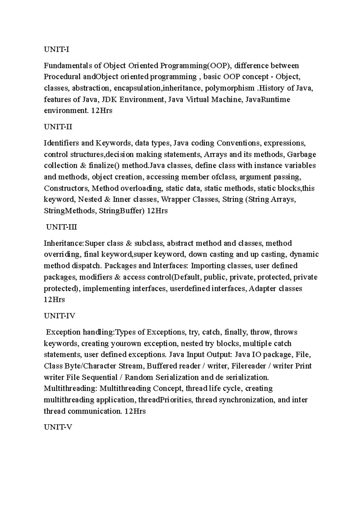 Unit 1 Java - test - Unit- Introduction to OOPS and Java: OOPS concepts ...