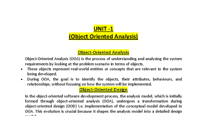 UNIT 1 Java Programming: Object-Oriented Analysis & Design Notes - Studocu