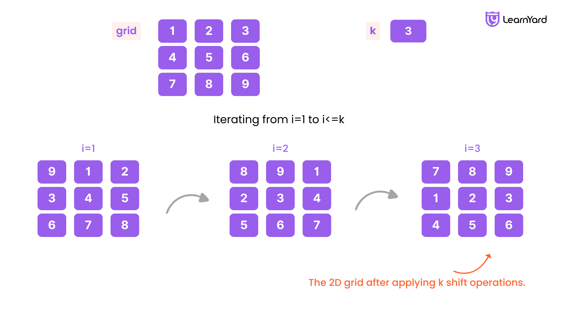 Shift 2D Grid Solution in C++/Java/Python/JS