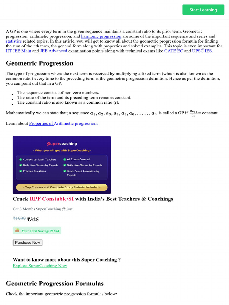 Geometric Progression (GP) - Know Definition, Formula, Types Here | PDF