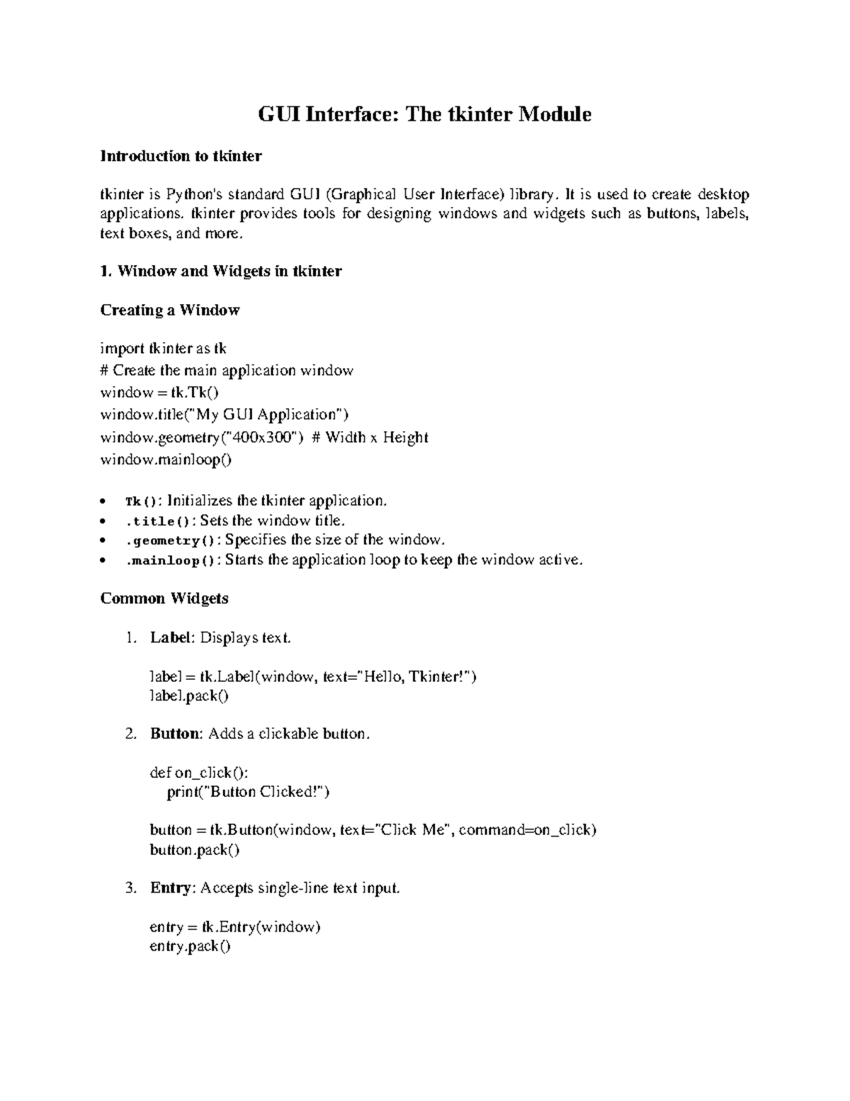 Tkinter Notes: Introduction to GUI Programming and Widgets - Studocu