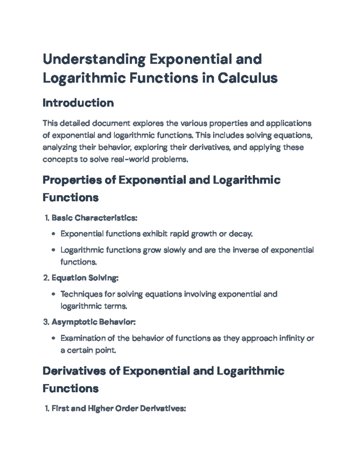 Understanding Exponential and Logarithmic Functions in Calculus ...