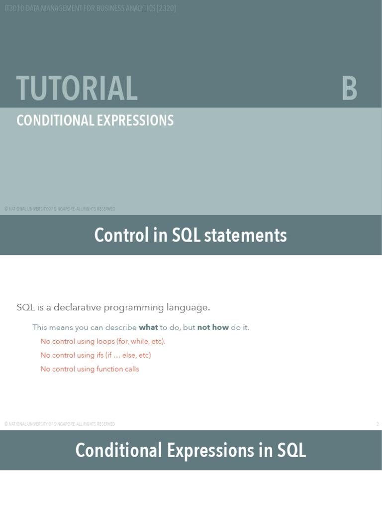 Based on this image's title: “B Tutorial: Conditional Expressions | PDF | Sql | Data”