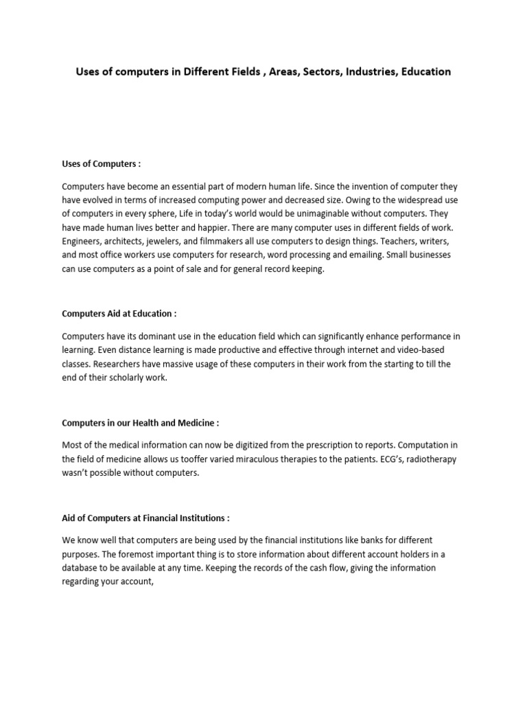 Uses of Computers in Different | PDF | Internet | Computing