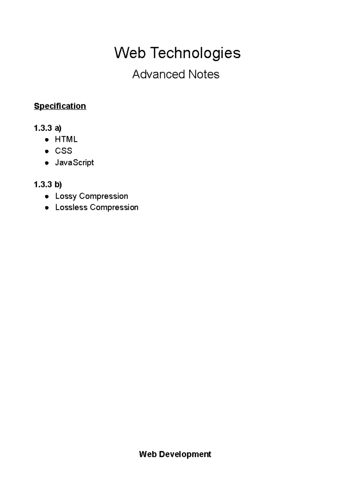 Web Technologies - Web Technologies Advanced Notes Specification 1.3 a ...