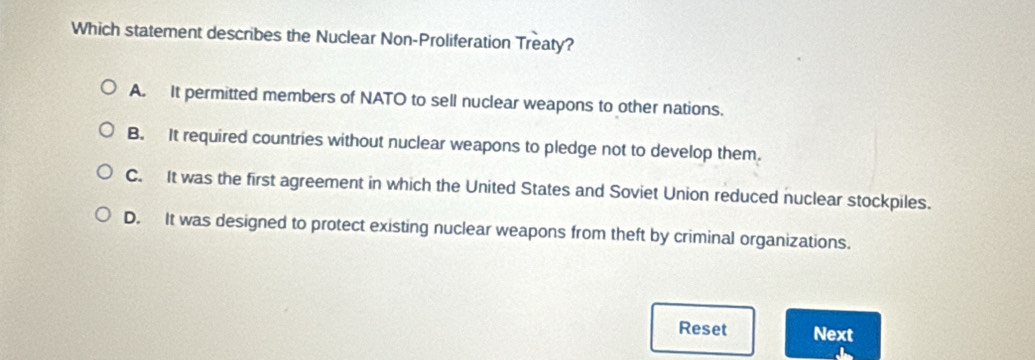 Solved: Which statement describes the Nuclear Non-Proliferation Treaty ...