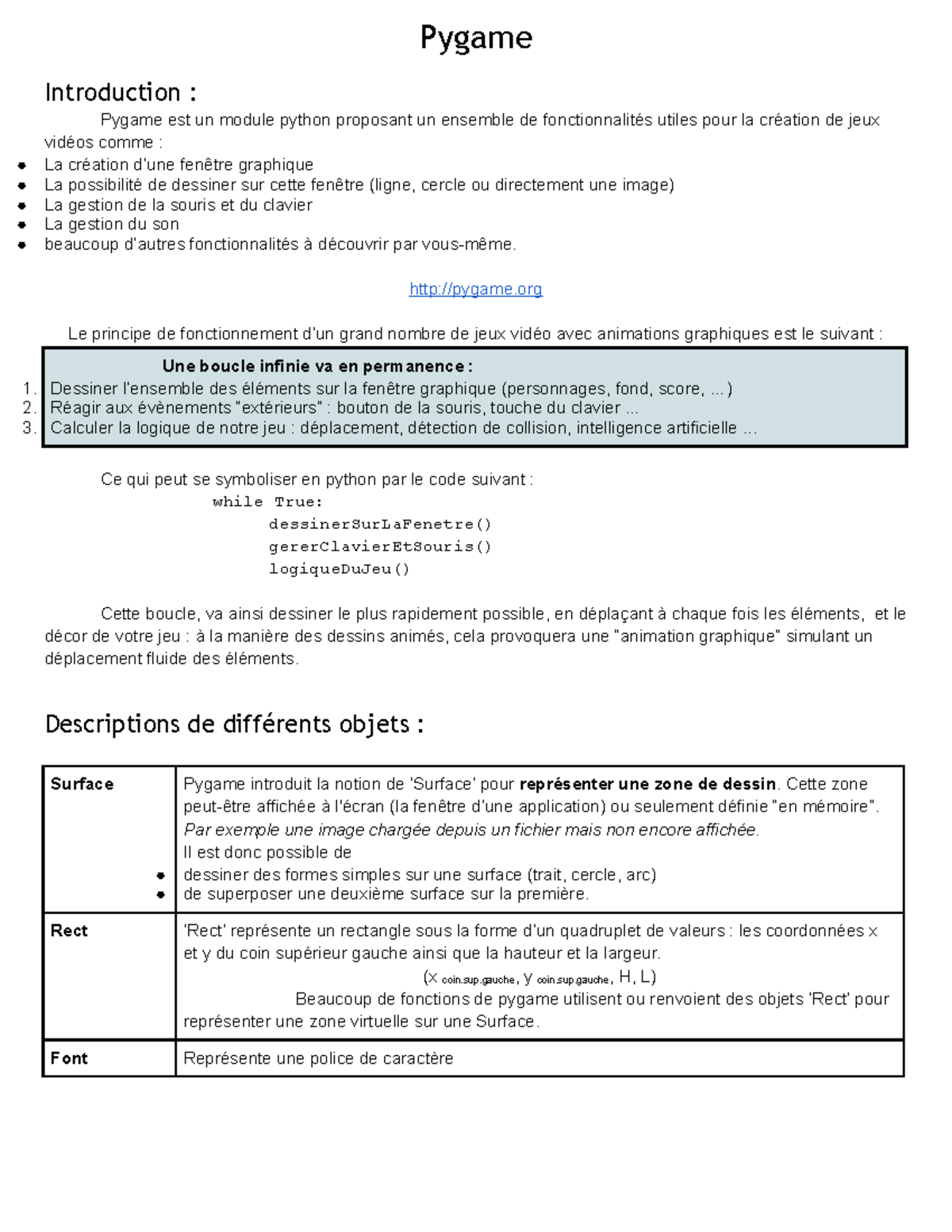 Introduction à Pygame : Création de Jeux Vidéo avec Python - Studocu